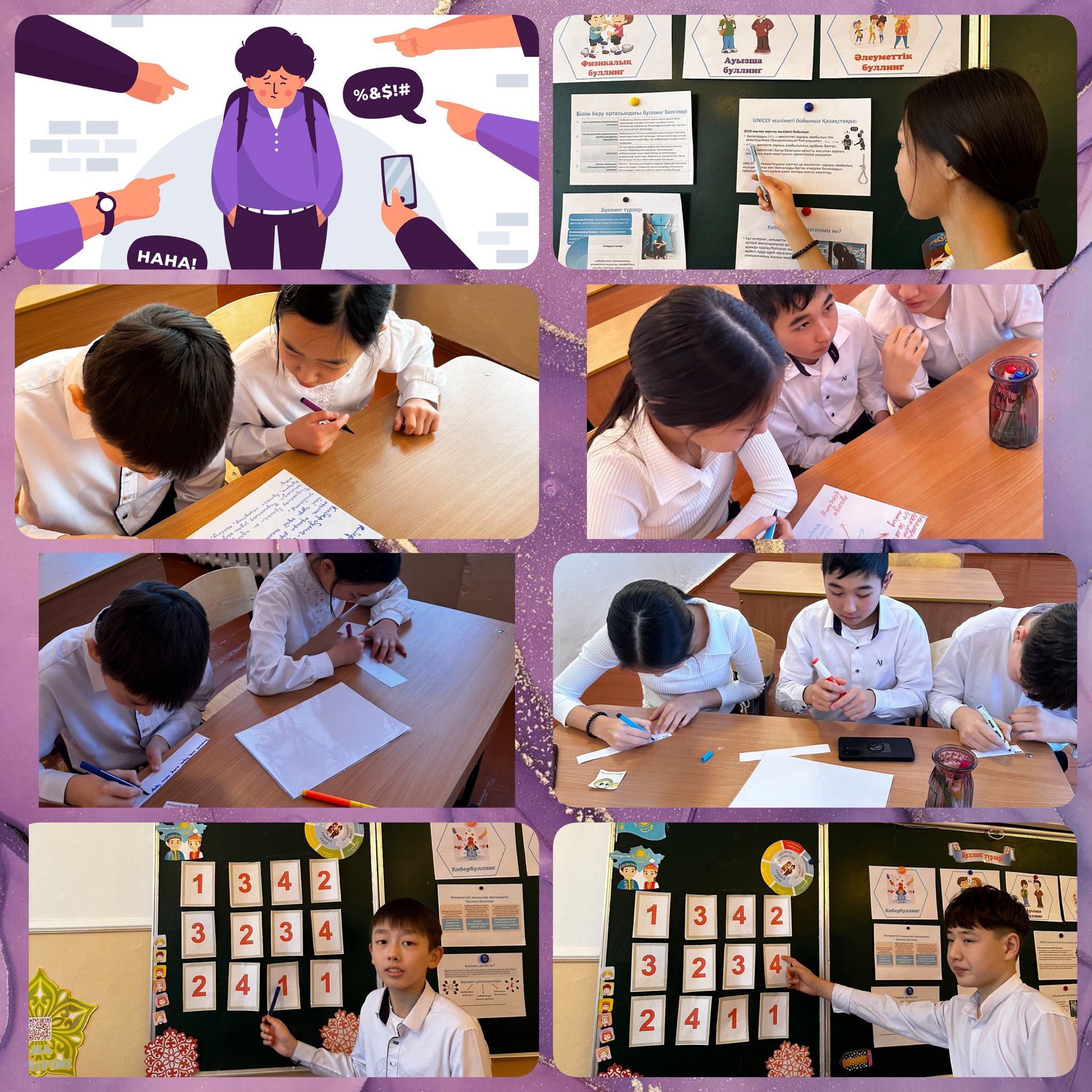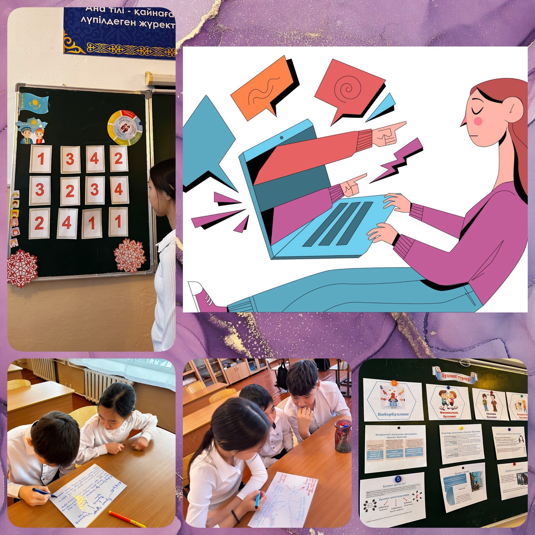 Қаңтар айының он екінші жұлдызында 6Б-8А сынып оқушыларымен «Буллинг және кибербуллинг» тақырыбында қызықты және пайдалы сынып сағаты өткізілді.