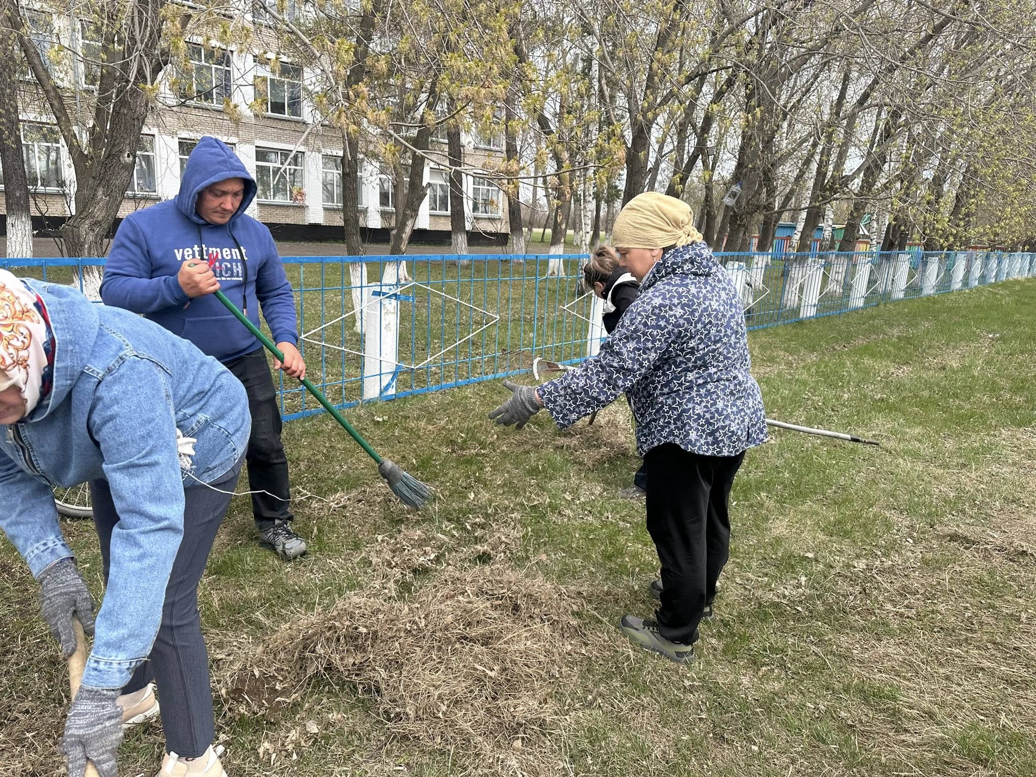 Іс-шараға мектеп әкімшілігі, педагогикалық ұжым, техникалық қызметкерлер және шағын орталықтың қызметкерлері қатысты. Сенбілік барысында мектеп аумағын тазалау және ретке келтіру бойынша ауқымды жұмыстар атқарылды: қоқыстар, құрғақ жапырақтар мен бұтақтар жиналды, жолдар сыпырылды, ағаштар әктелді.