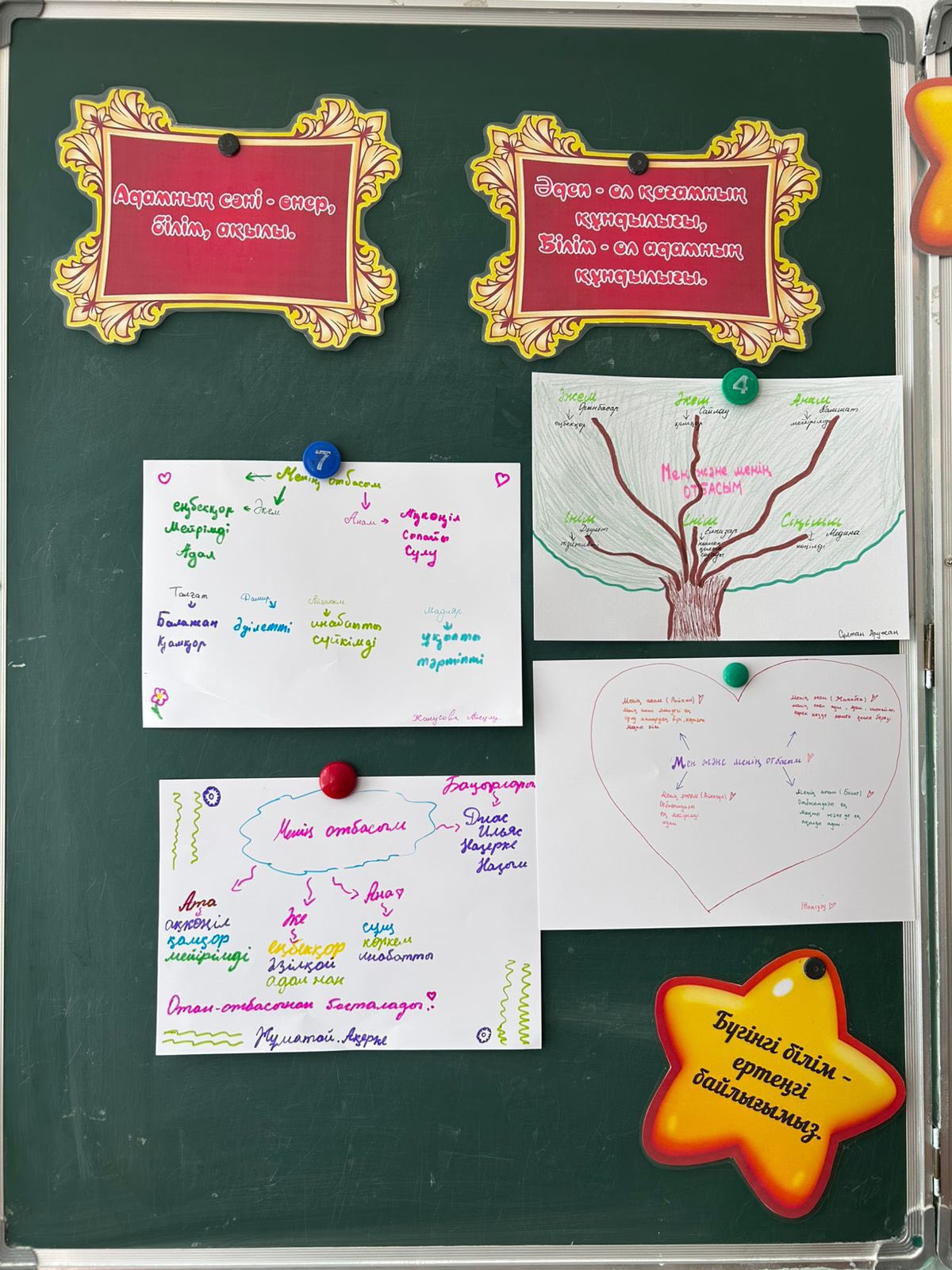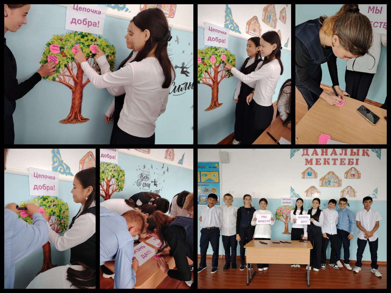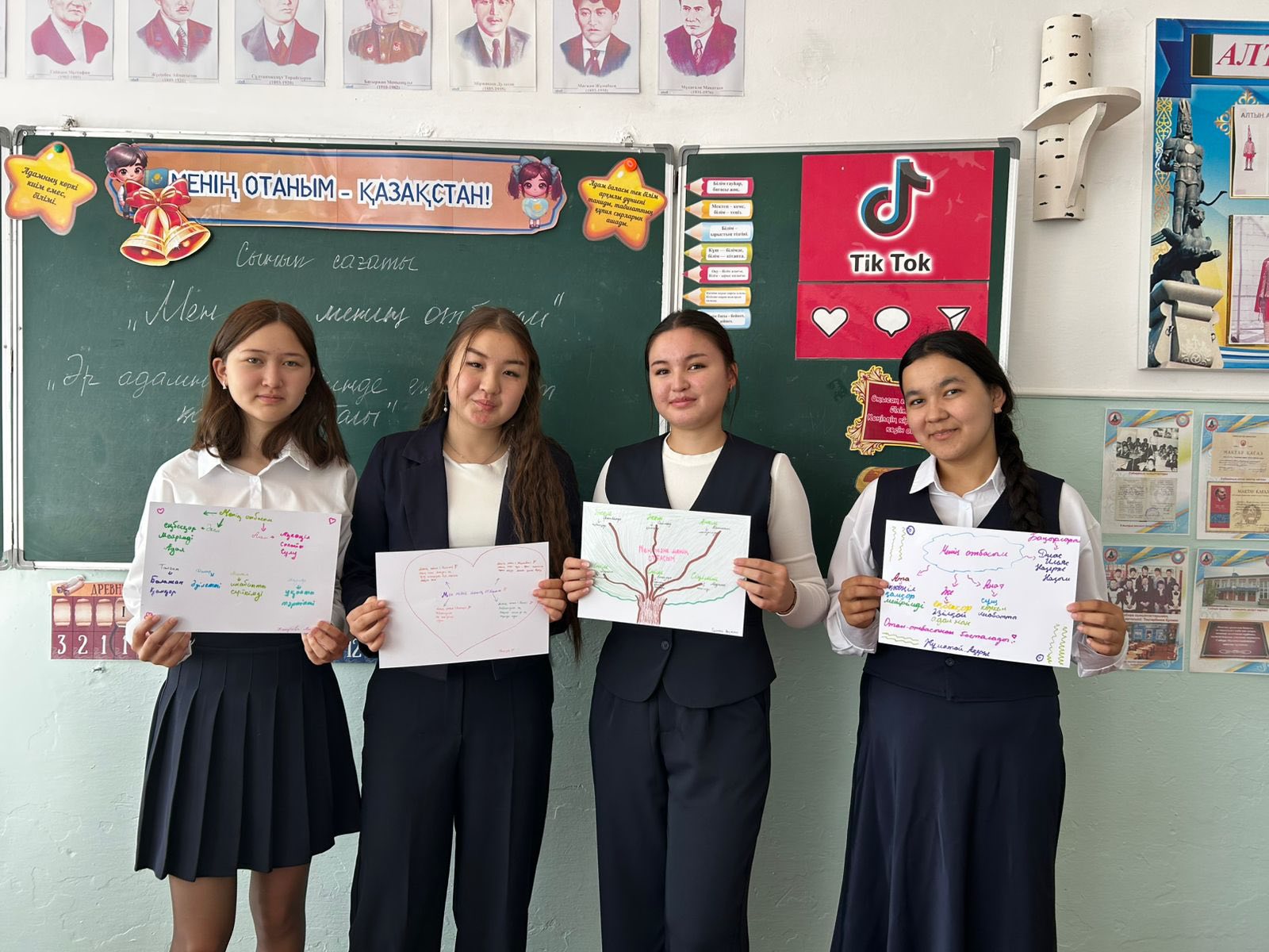Затем был проведён коллективный творческий элемент – «Стена дружбы», где учащиеся отметили ценность уважения, взаимопонимания и сплочённости. Это способствовало развитию чувства единства и гордости за свою Родину – Казахстан.