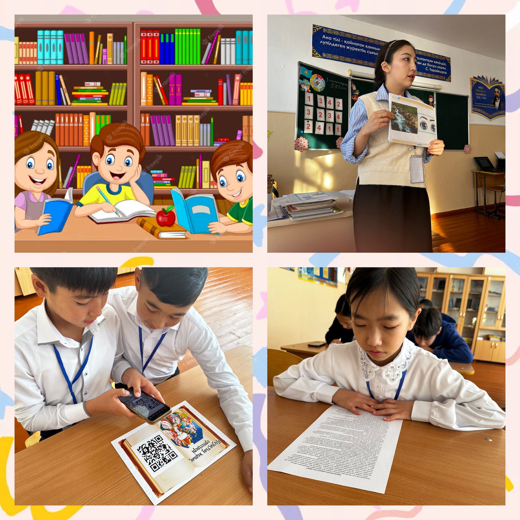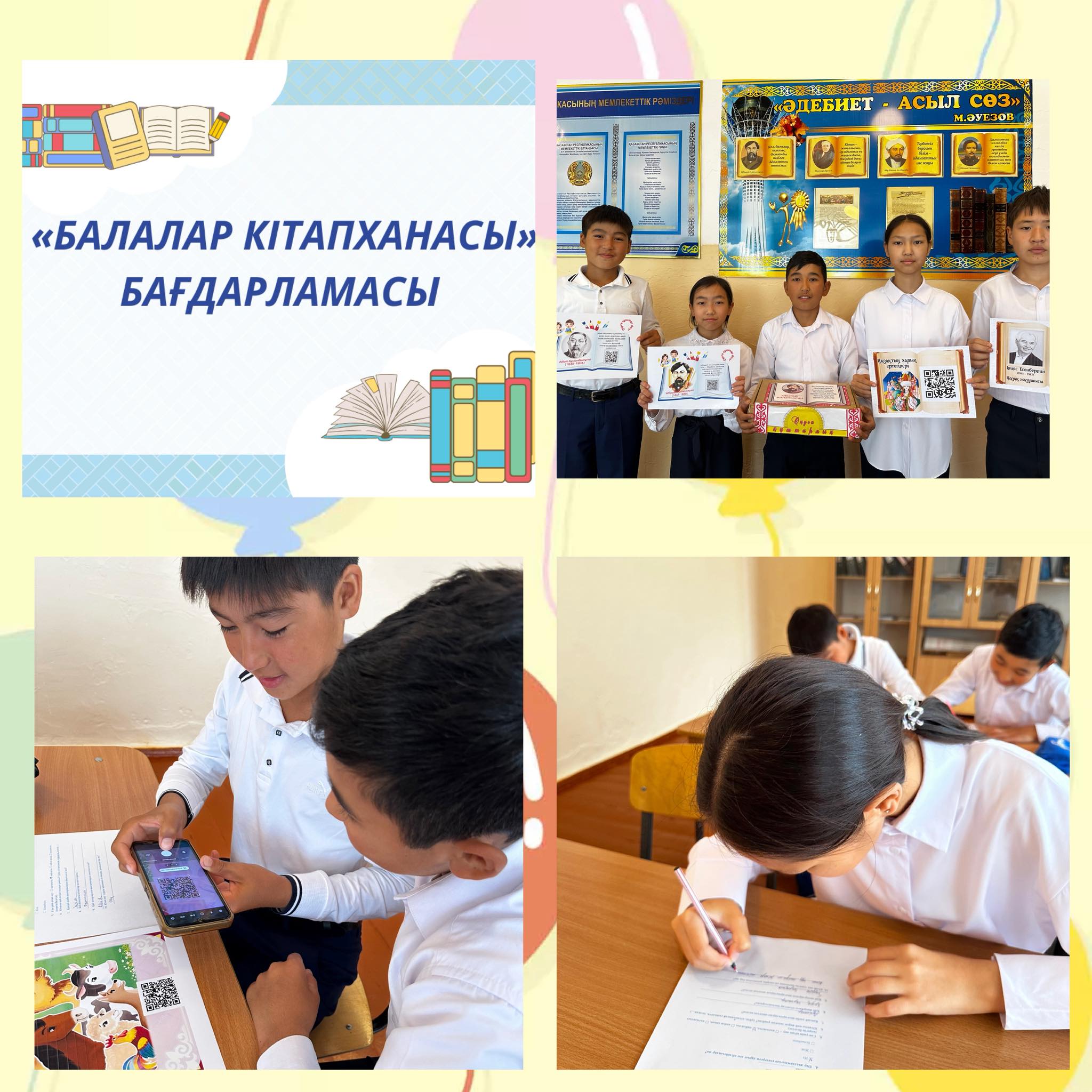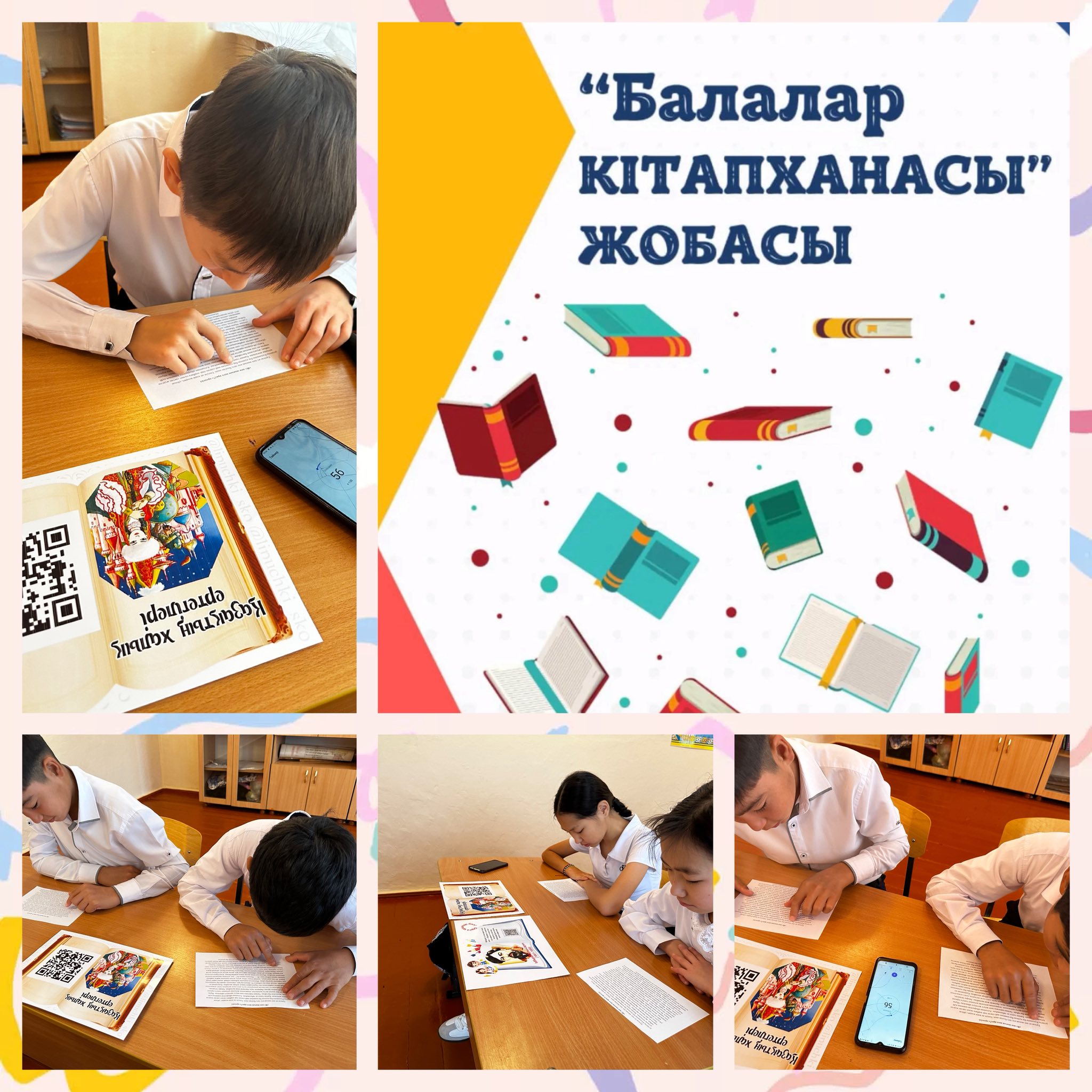 6 «Б» - 8 «А» сынып оқушылары балалар кітапханасы жобасы аясында QR код арқылы халық ертегілерін оқып, сонымен қатар оқу жылдамдығын тексерді.