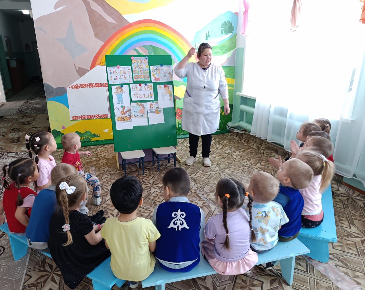 «Таза Қазақстан» акциясы аясында «Жасыл өңір – жасампаз болашақ» экологиялық айлығы барысында «Балдәурен» шағын орталығының тәрбиеленушілерімен медбике Чулкова Ж. Н. «Тазалық — денсаулық кепілі» тақырыбында әңгіме өткізді.
